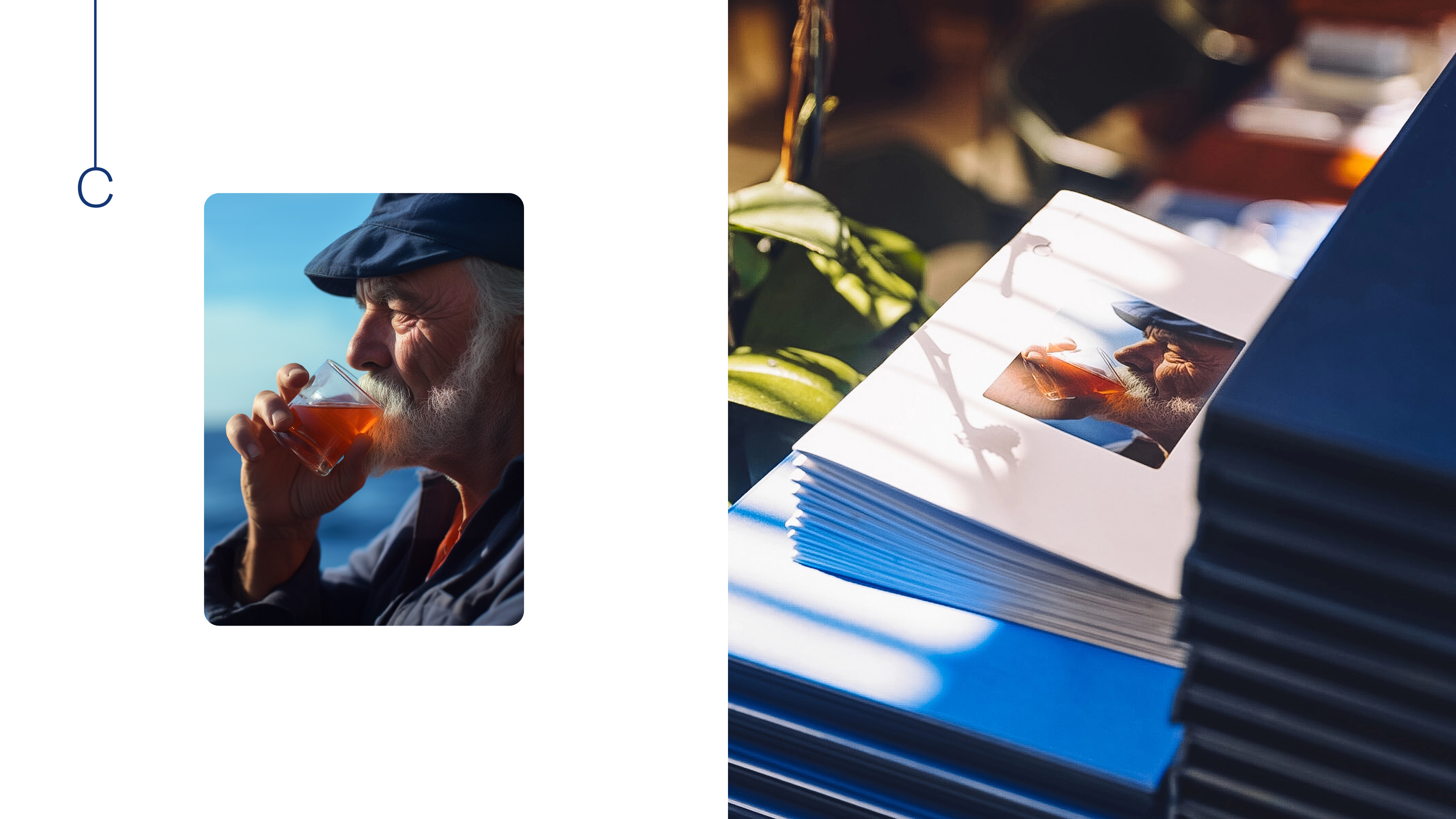 Artificial Intelligence, particularly the use of MidJourney, was used to create two elements of the cocktail menu. Images of Spanish archetypes reminiscent of the 1980s were generated with a prompt collaboratively developed with the client, who described uncles, characters from their village, and other significant elements crucial for reviving their emotional memory. The drinks were also conceptualized by artificial intelligence, in a prompt co-created with the in-house mixologist chef.