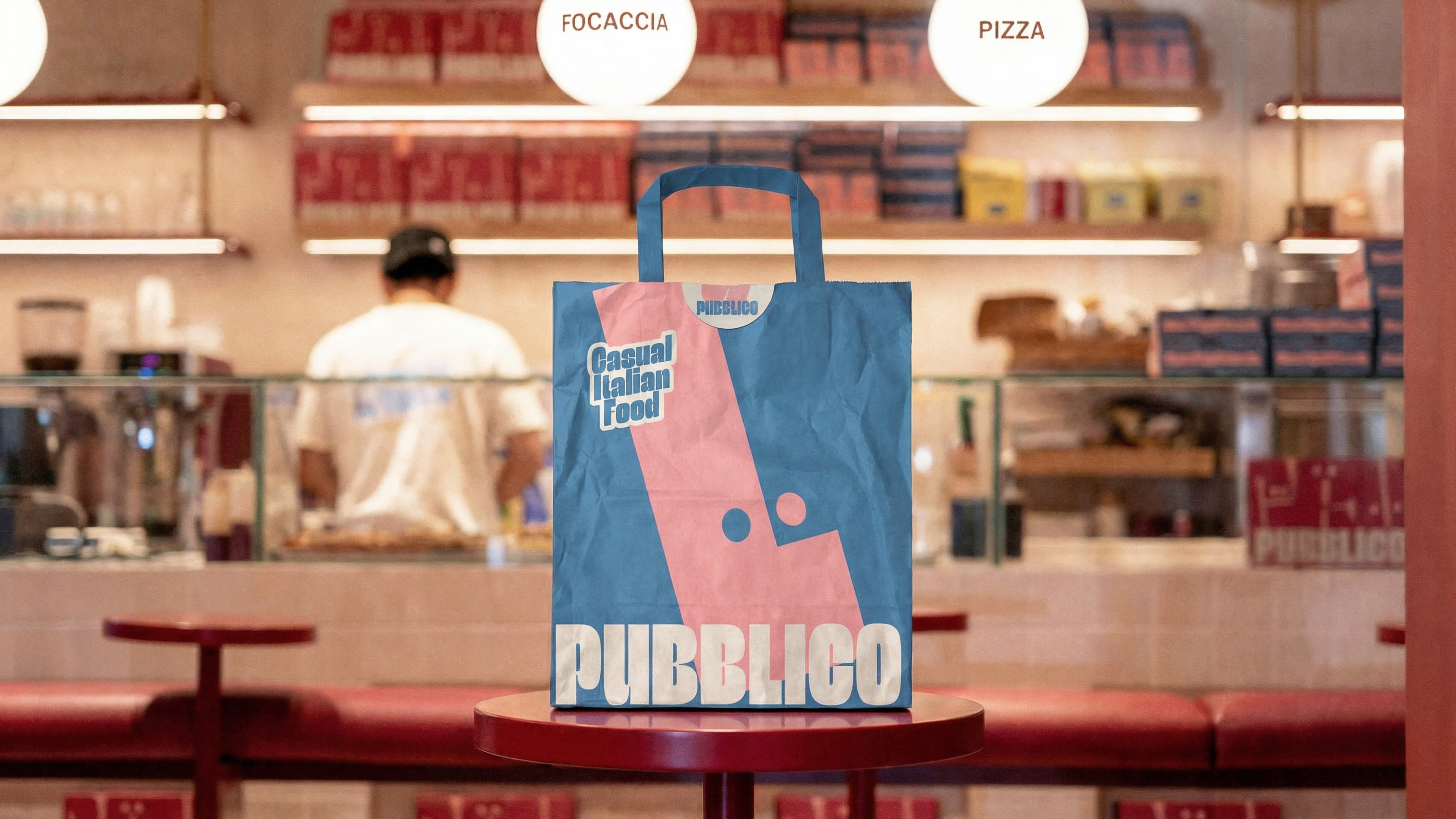 The logo was inspired directly by the word pubblico itself (Italian for public). The idea of people gathering together is subtly represented by the “eyes” hidden within the letters, turning the name into a lively symbol of community. The rounded, modern typeface feels generous and bold—just like the food: pizzas al taglio and focaccias, hearty and irresistible.